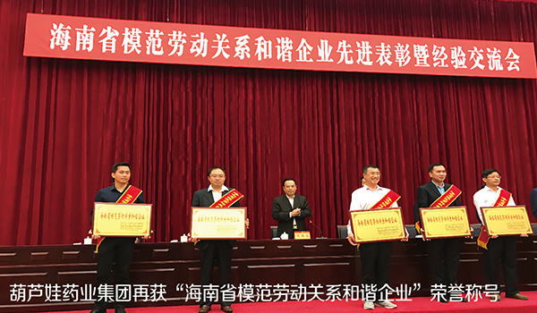 葫芦娃药业集团再获“海南省模范劳动关系和谐企业”荣誉称号