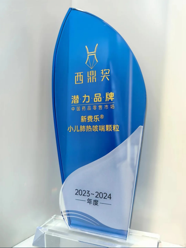 葫芦娃药业新费乐牌小儿肺热咳喘颗粒(4g)荣获“2023-2024年度中国药品零售市场潜力品牌”