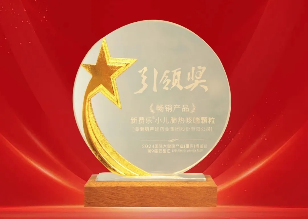 葫芦娃药业新费乐牌小儿肺热咳喘颗粒(4g)荣获“产品引领奖”