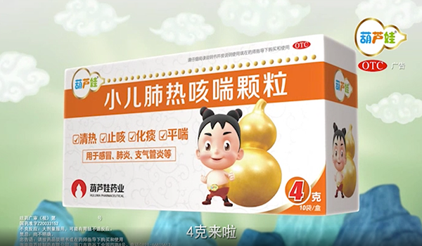 葫芦娃牌小儿肺热咳喘颗粒四克新装电视广告在央视一套开播