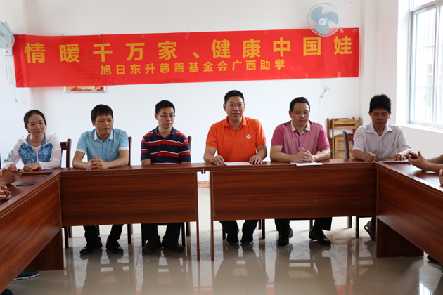捐助仪式上,韦天宝总经理代表旭日东升慈善基金会发表了“饮水思源,反哺社会”的讲话,表达了葫芦娃药业集团对贫困学生的浓浓关爱之情,并表示旭日东升慈善基金会一直关注孩子们的健康和教育问题,帮助孩子们在社会中健康成长。