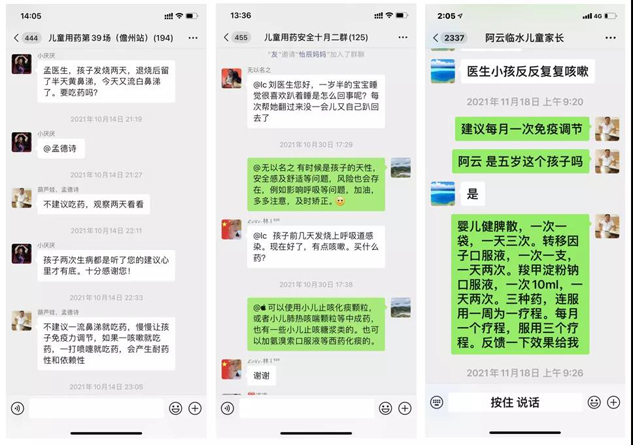 在每场讲座结束后,为了能够与家长们保持持续沟通的效果,我们还组建了儿童健康交流微信群,本群禁止任何人发布与儿童健康无关的信息和广告等,专门用于专家团队24小时在线为广大家长持续提供咨询服务,不厌其烦地针对每一位小朋友出现的症状和日常健康管理进行用药、养护指导。